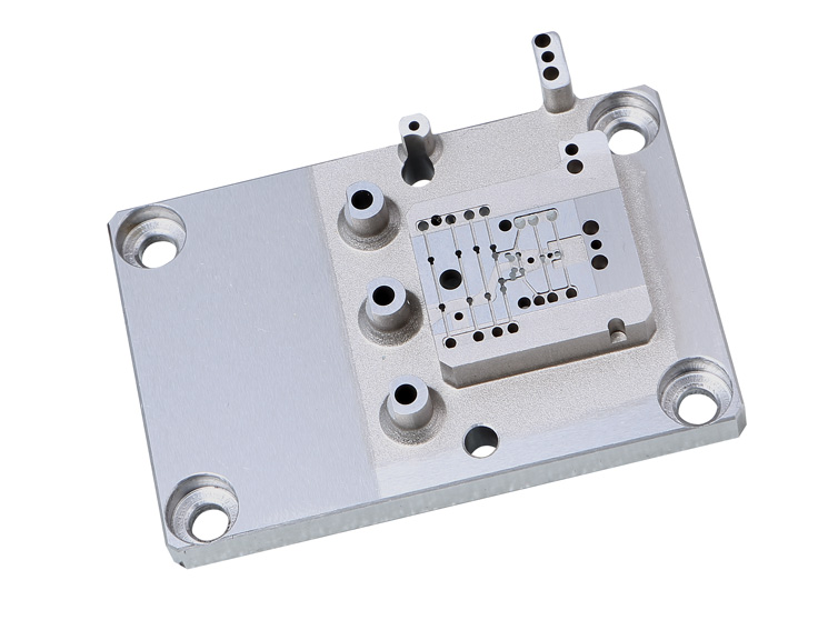 ![]() 產品名:緩沖片沖頭 材料:CD650 & ASP23, Torlon 主要工藝:電火花、磨床、拋光 技術難點: --外形與D型沖孔模輪廓度0.003mm; --內孔與外圓同軸度公差+/-0.0015mm; -- 組合設計,頭部可互換 --外觀嚴格:100倍顯微鏡下檢查D型斜面刀口銳邊不可崩缺。 | ![]() 1.產品名稱:托盤單元 2.材料:AL6061 3.主要工藝:CNC 4.技術難點:凸臺外形尺寸±0.02mm,八個小孔公差+0.01mm,位置度±0.01mm | ![]() 1.產品名稱:三通 2.材料: 7075-T6 3.主要工藝: 車床, CNC 4.技術難點:各外圓全跳動0.01,各端面到軸線距離±0.005mm |