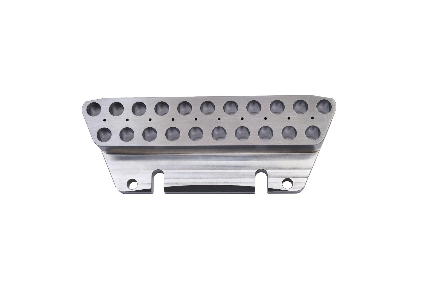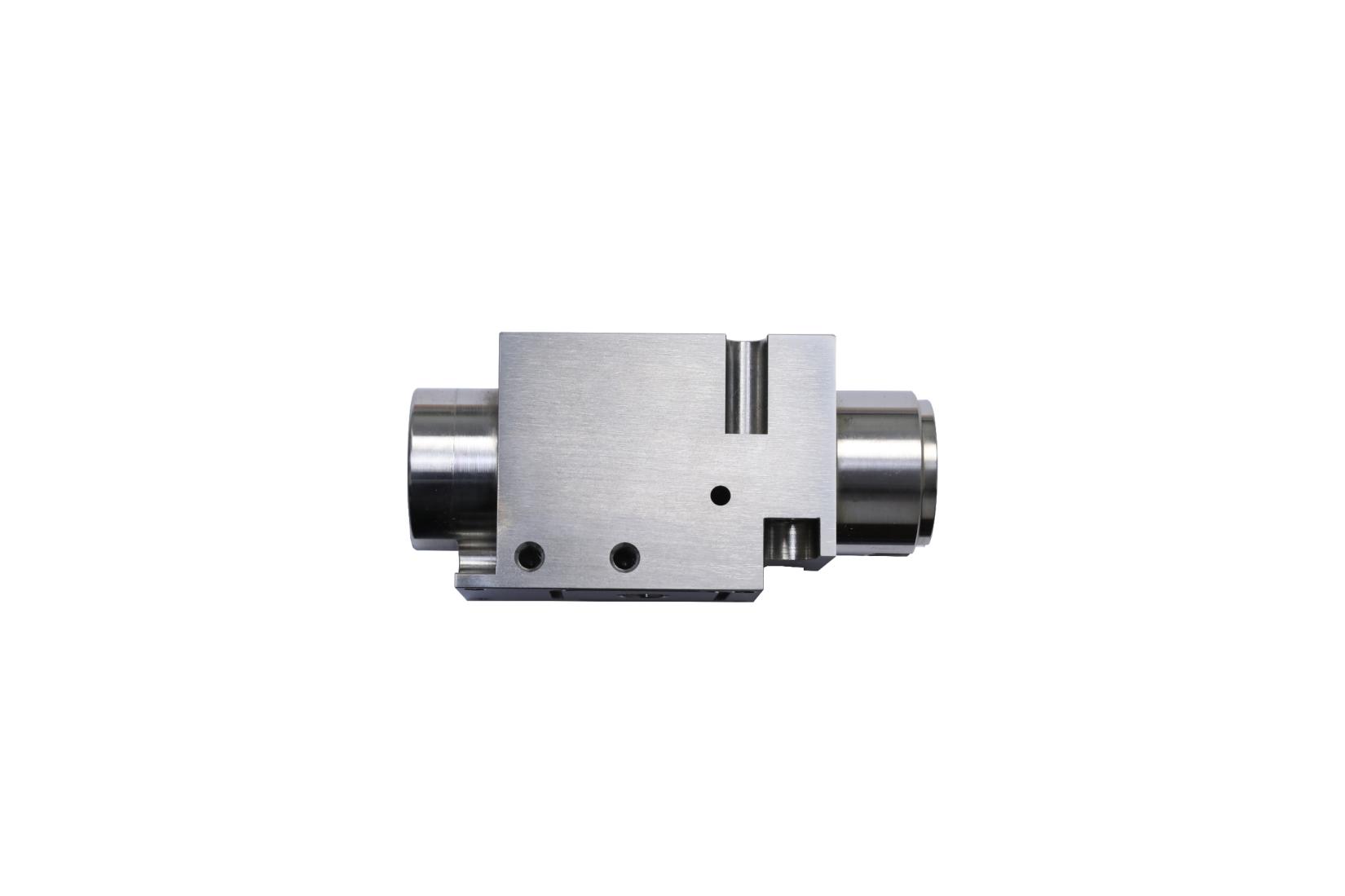 產品名:HGA彈性臂壓塊 材 料:440C或CD650鎢鋼 主要工藝:電火花,慢走絲、平磨 技術難點: --零件尺寸小而幾何尺寸/形位公差精度極精; --所有精孔尺寸/位置精度0.003mm由慢走絲/鏜磨加工; --頂部十余處電火花加工異型淺槽輪廓/深度公差0.003mm --整體金剛石涂層 | 產品名:PZT載板 材料: Al 6061-T6 主要工藝:CNC 技術難點: --所有120控制孔徑公差0.005mm以及位置度公差0.005mm. --硬質黑色氧化處理后保證整體平面度0.02mm以內。 | ![]() 產品名:集成安裝盒 材料:AL6061 主要工藝:CNC,硬黑氧化+化學轉化膜 技術難點: -- CNC多軸加工;六面平面度、平行度、垂直度全部0.005~0.01mm; --三面精孔位置度0.01以內; --近300處尺寸由CNC多次/多面加工/CMM三坐標測量確保。 |